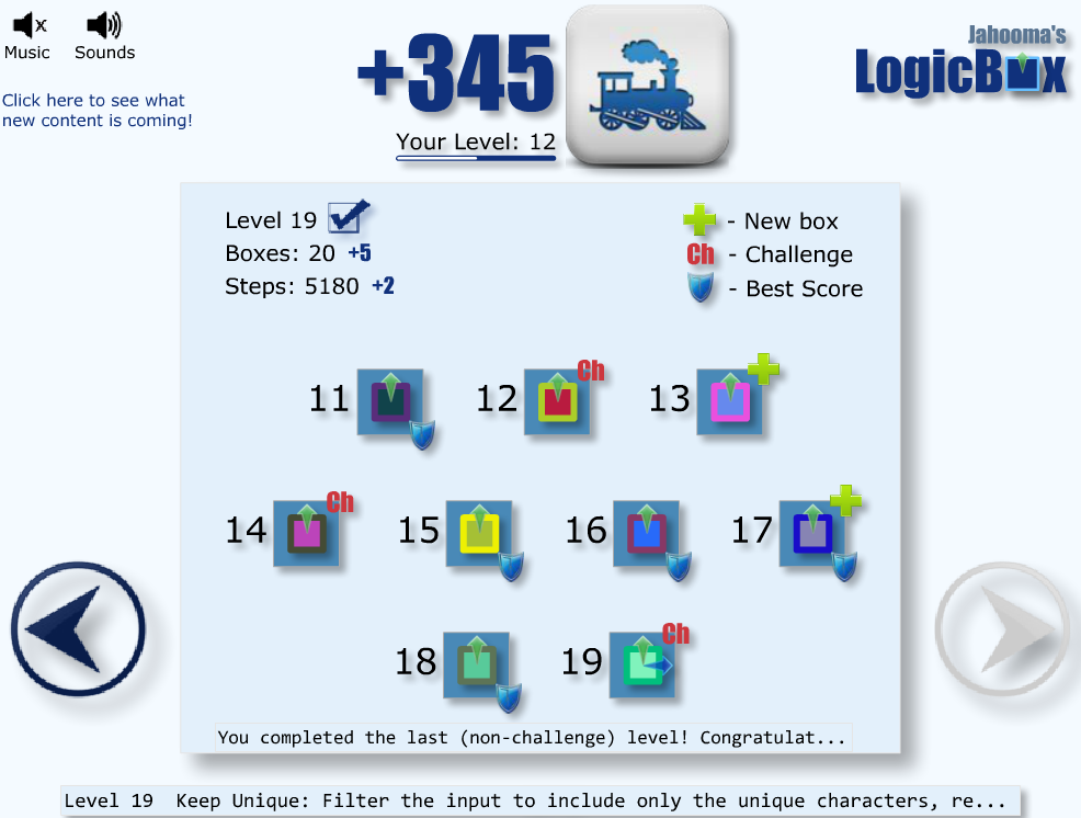 Here's four reasons to purchase the full game. Free content is restricted to just the first chapter. 1. Play 70 levels, with more to come! That's many hours of LogicBox. 2. Gain primitives with new capabilities, and accumulate a library of powerful boxes,